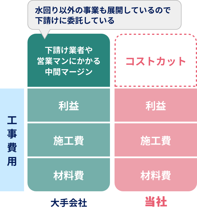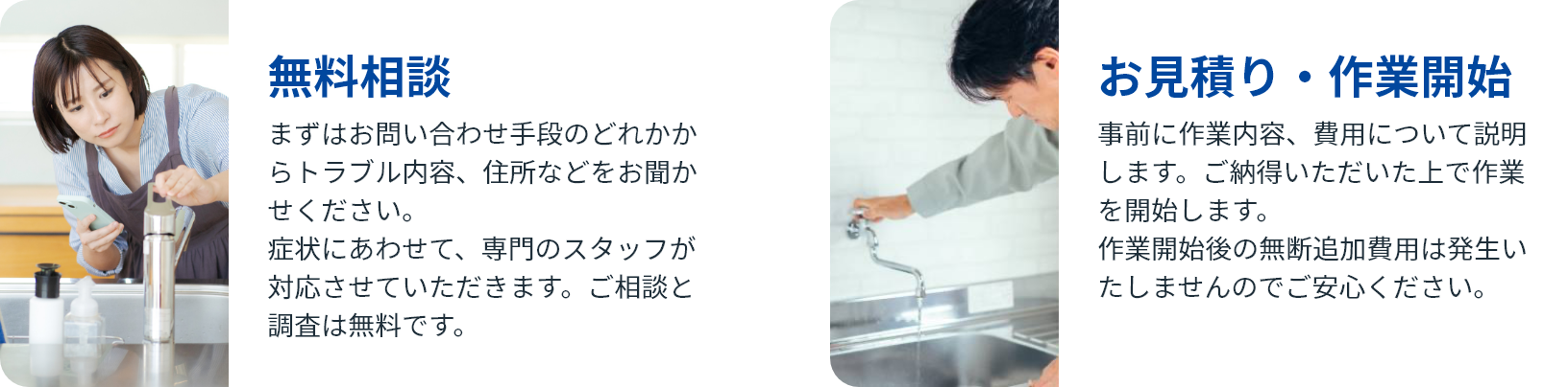 水レスキュー24は仲介業者による費用の上乗せはされないため、他の業者と比べて低価格でサービス提供が可能です。